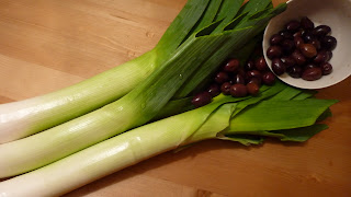 Incepem sa taiem prazul in betisoare de 2-3 cm lungime, taiem si din frunze ce putem (dar atentie! nu se pun frunze deteriorate, daca nu putem alege mare lucru din ele, nu mai punem frunze, nu-i bai) cam asha: